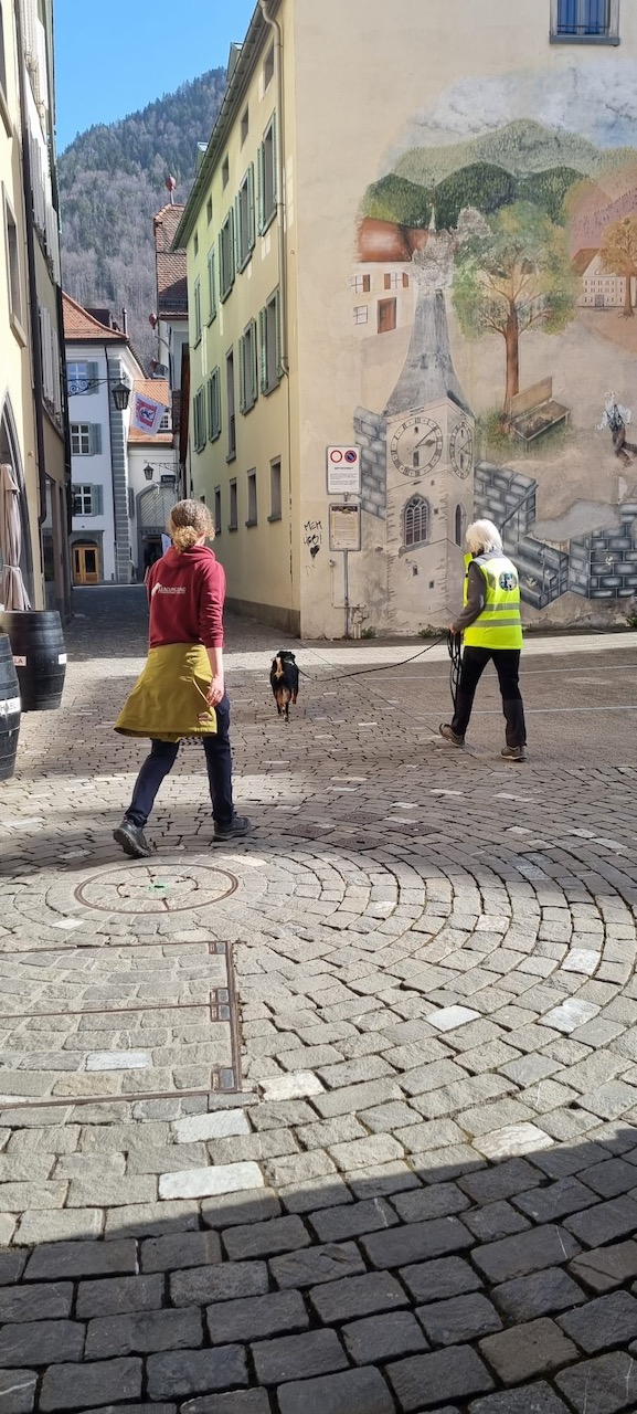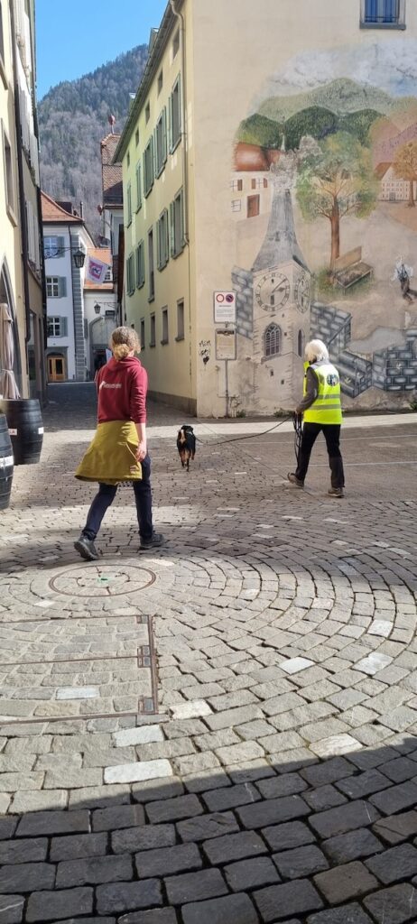 Am Sonntag-Morgen waren wir in der Altstadt von Chur, eine ganz andere Thematik. Viele Gassen, enge Winkel, viele Leute, auch nicht einfach, aber eher das, was wir meistens trainierten.